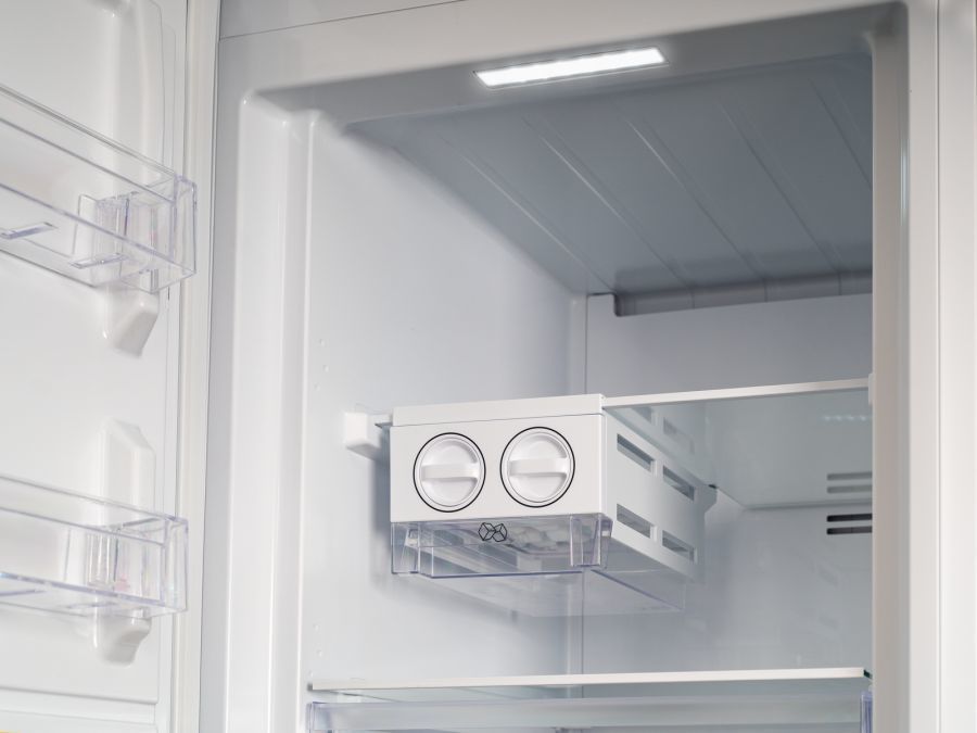 - Угол открытия дверей морозильника 90° благодаря технологии Zero Clearance позволяет установить морозильник вплотную к стене. При этом ящики и полки полностью вынимаются из морозильника, дверца не мешает.