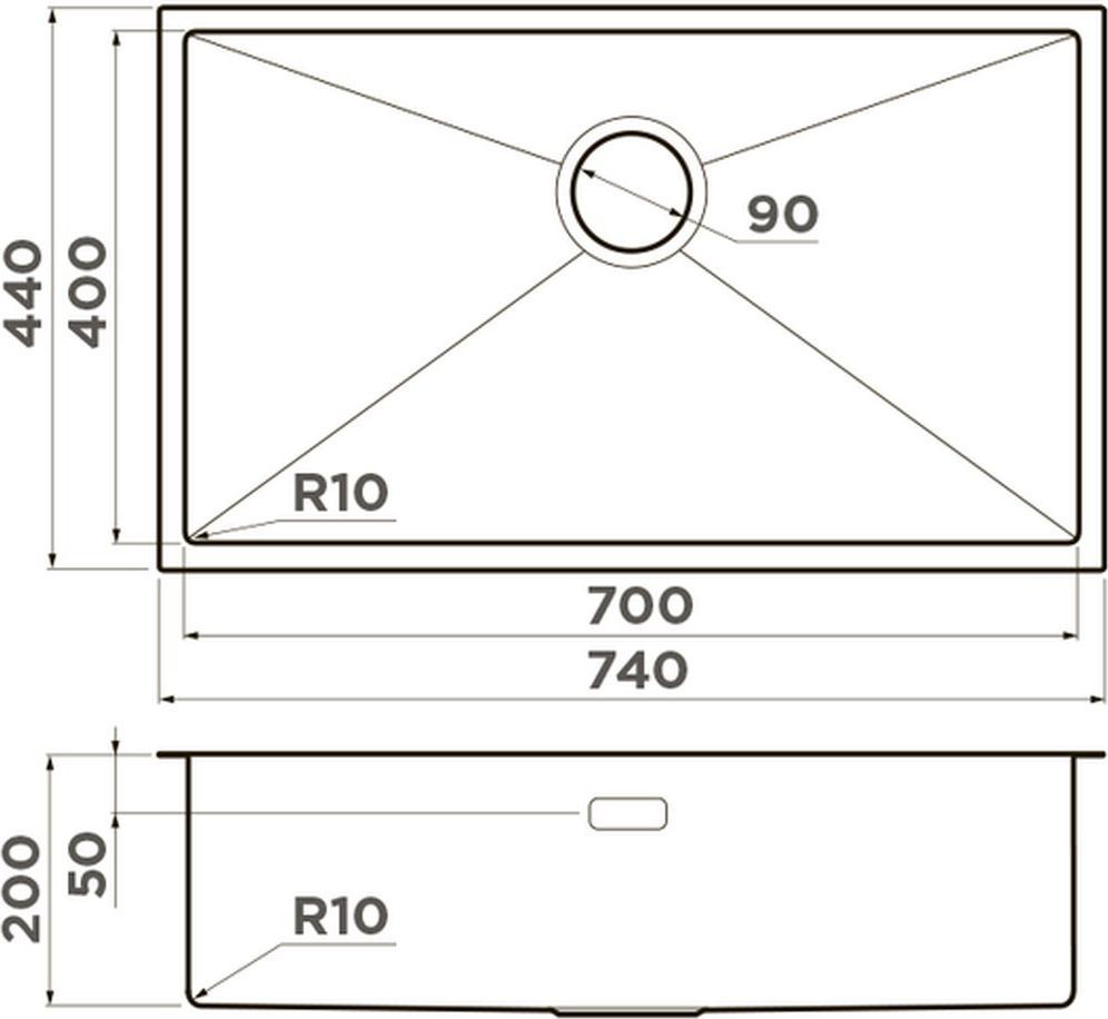Мойка кухонная Omoikiri Taki 74-U/IF GB с донным клапаном, материал нержавеющая сталь, цвет графит.