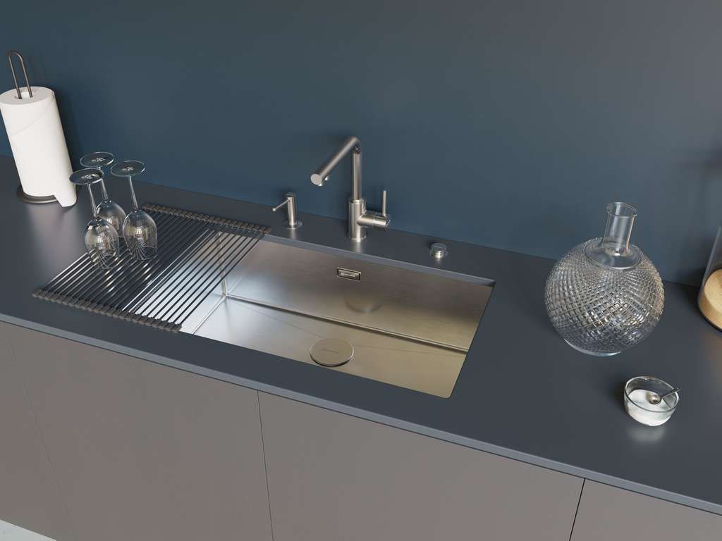Установка мойки под столешницу - также один из вариантов врезной установки. В столешнице вырезается отверстие равное размерам чаши, сама мойка крепится снизу столешницы и закрепляется специальными клипсами. Визуальный эффект - стильная, дорогая, функциональная кухонная мойка. Вы легко сможете протирать столешницу, сбрасывая все крошки и кожуру от овощей и фруктов прямо в мойку. Важно при таком монтаже, столешница должна быть выполнена из водонепроницаемого материала (натуральный или искусственный камень, стекло).