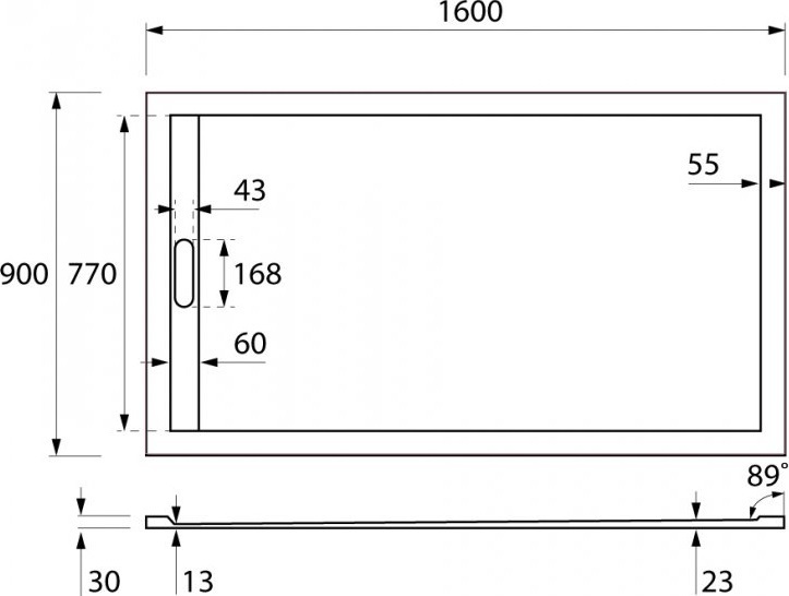 Характеристики Поддон Cezares (TRAY-AS-AH-160/90-30-W)