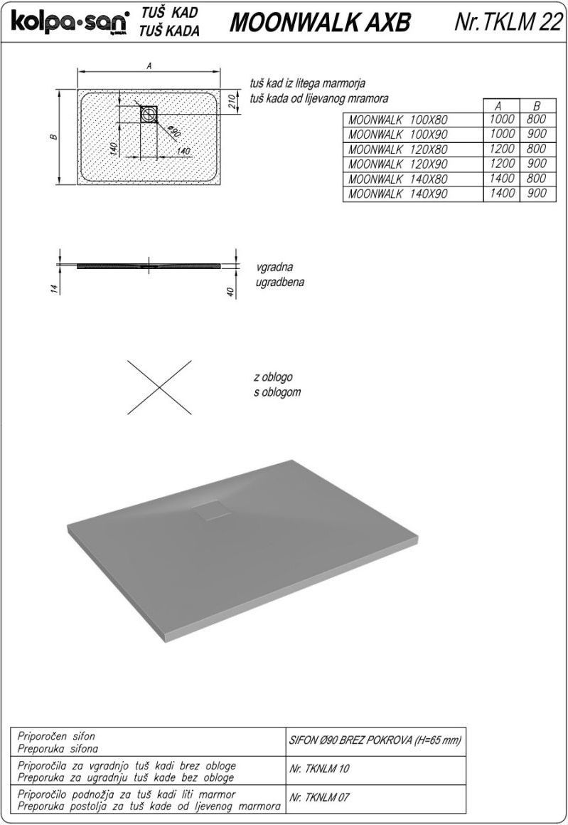 Описание Поддон Kolpa-San Moonwalk 100x90_1