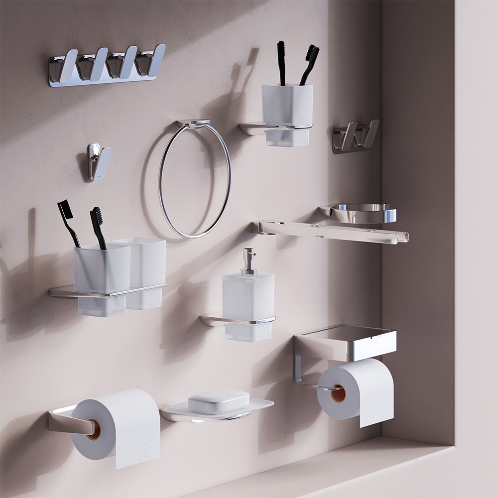 Аксессуары Inspire V2.0 – еще одна отсылка к Hi-Tech дизайну Обтекаемая форма и стильные элементы из ультратонкого сверхпрочного стекла напоминают современные смартфоны внешне и тактильно Максимальная наполненность коллекции аксессуаров для завершенного образа ванной комнаты.