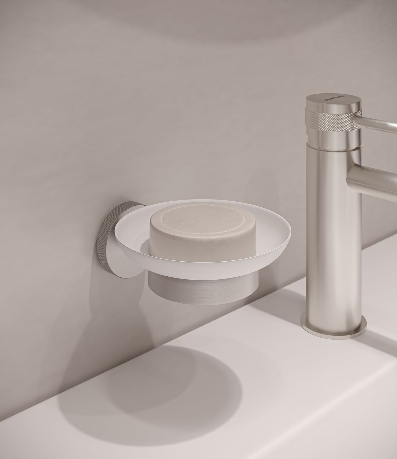 Мыльница Allen Brau Priority 6.31005-BN, с настенным держателем, материал латунь/керамика, цвет белый/никель браш.