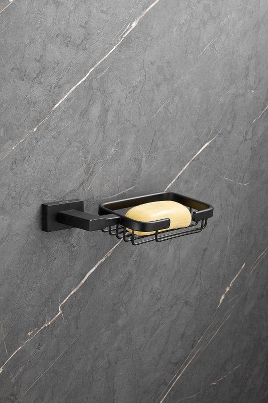 Мыльница Belz B90302-1 с настенным держателем, материал нержавеющая сталь, цвет чёрный матовый.