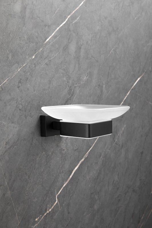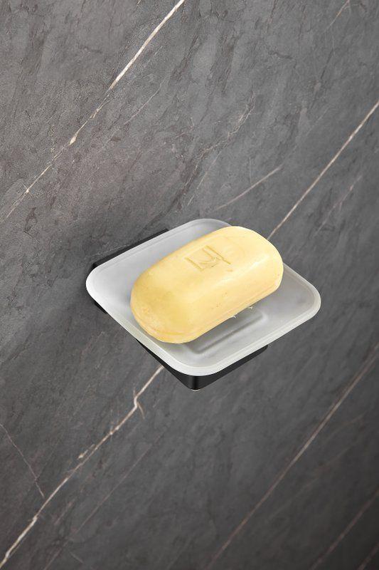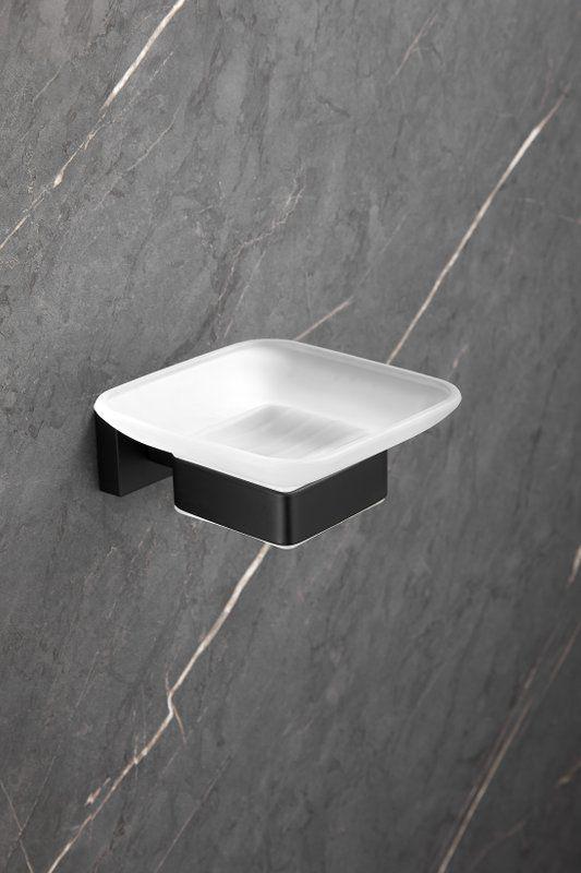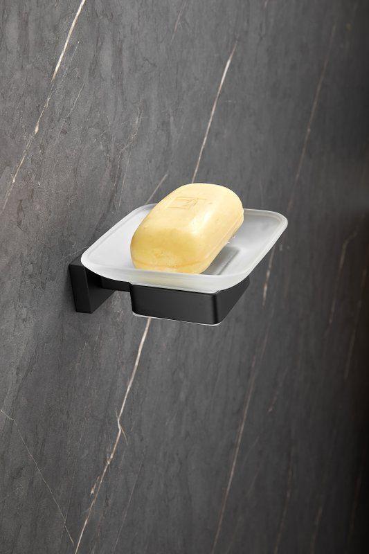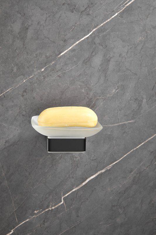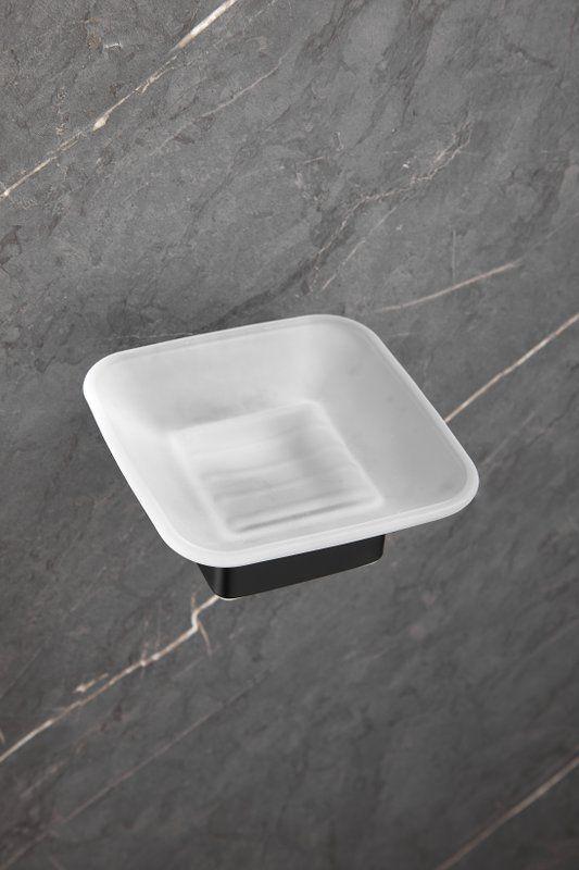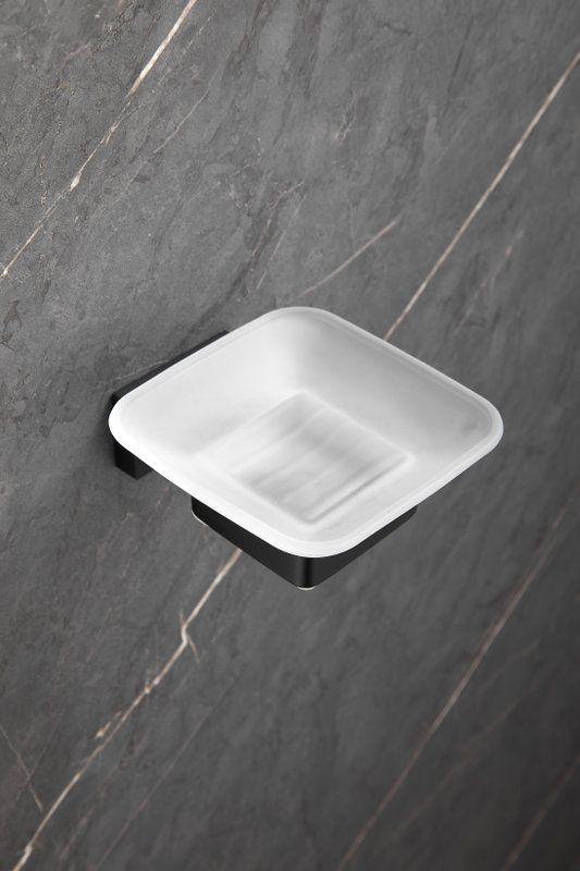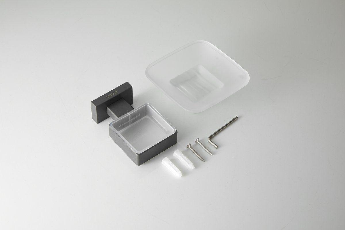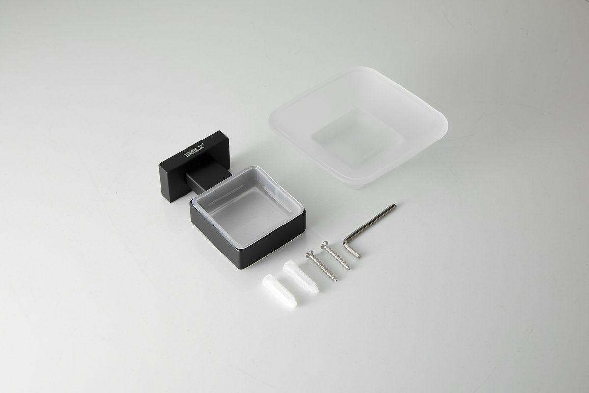 Мыльница Belz B90302 с настенным держателем, материал нержавеющая сталь/стекло, цвет чёрный матовый.