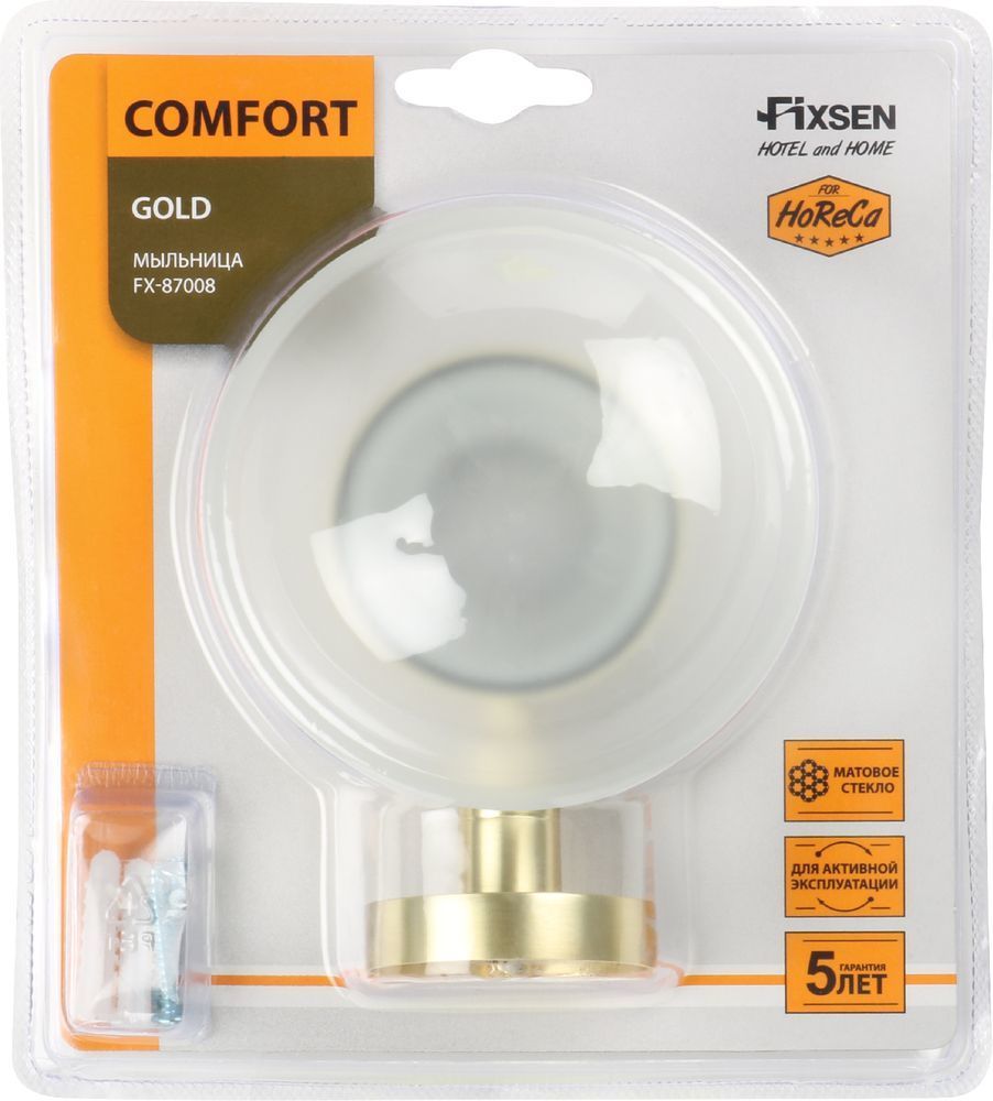 Мыльница Fixsen Comfort с настенным держателем, материал сталь/стекло, цвет золото-сатин.