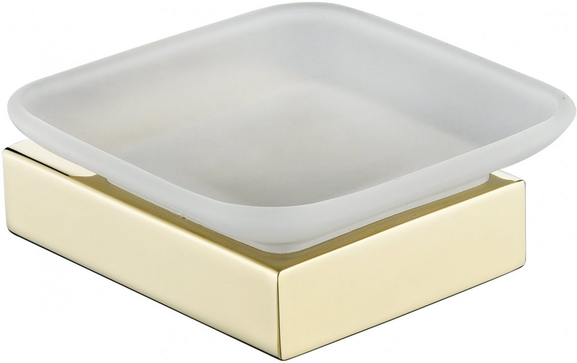 Мыльница Grocenberg AC0023GO, с настенным держателем, материал латунь/стекло матовое, цвет золото.