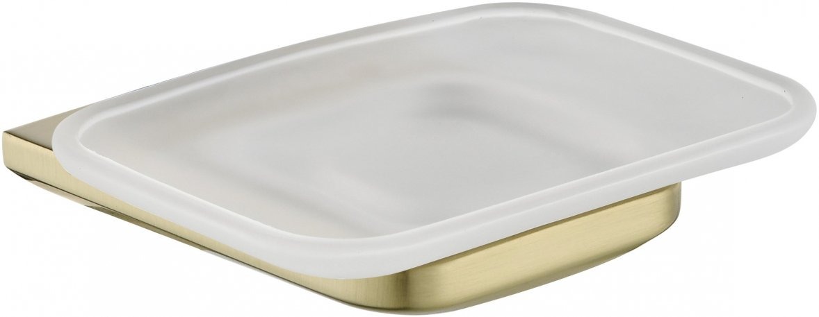 Мыльница Grocenberg AC0058MG, с настенным держателем, материал латунь/стекло матовое, цвет матовое золото.
