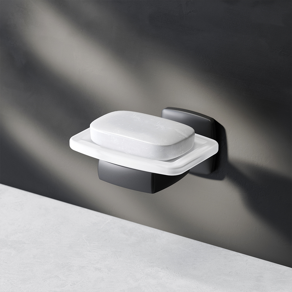 Мыльница AM.PM Gem A9034222 с настенным держателем, материал цинк/стекло, цвет чёрный.