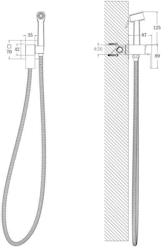 Набор для гигиенического душа Belz B55805-3 со скрытой частью, материал латунь, цвет оружейная сталь.