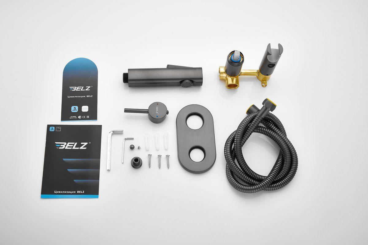 Набор для гигиенического душа Belz B55807-3 со скрытой частью, материал латунь, цвет оружейная сталь.