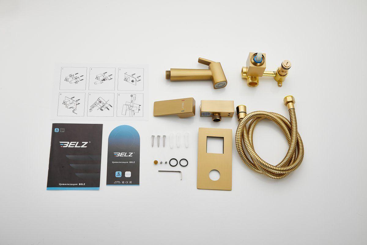 Набор для гигиенического душа Belz B55808-5 со скрытой частью, материал латунь, цвет золото матовое.
