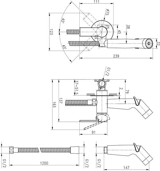 - Шланг с двойной оплеткой 120 см