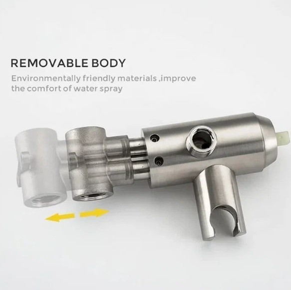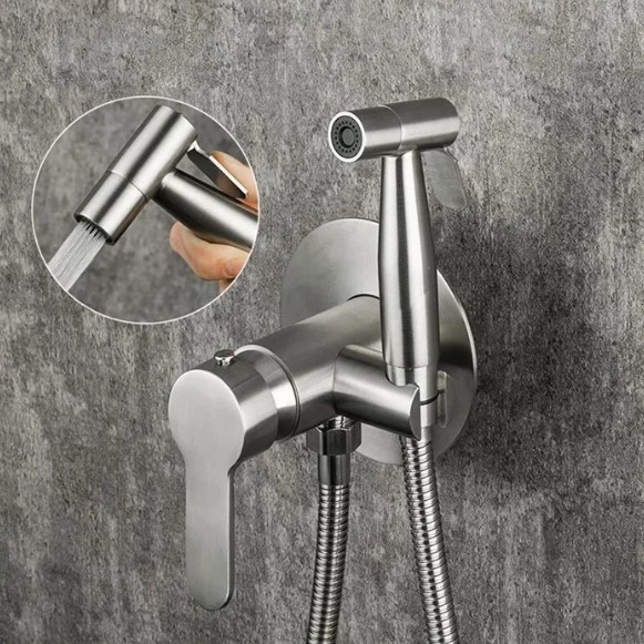Гигиенический душ Gappo G7299-30 оборудован однорежимной гигиенической лейкой. Крепления скрываются за металлической пластиной на которой расположен смеситель. Материал изготовления нержавеющая сталь, самый практичный материал в сантехнике. Длина шланга лейки 1.2 метра. Этого вполне достаточно для гигиенического душа. Механизм смешивания керамический картридж диаметр 35 мм, это позволяет плавно и удобно настраивать воду. Чтобы открыть подачу воды достаточно нажать сверху на рычаг на лейку.