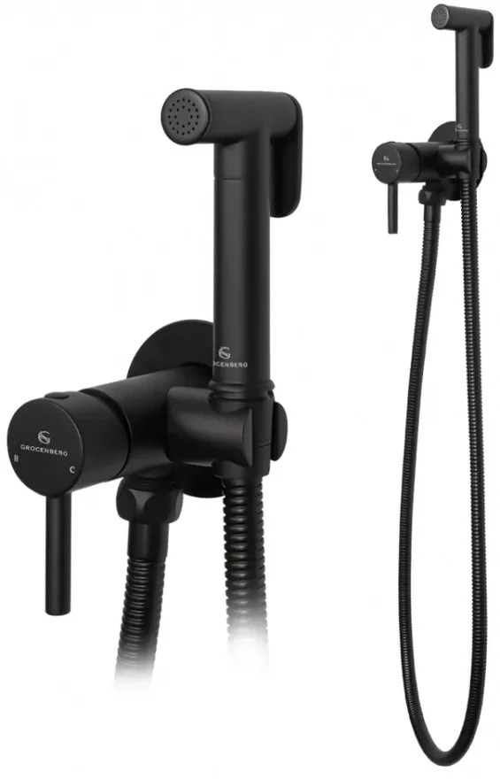 Набор для гигиенического душа Grocenberg GB001BL со скрытой частью, материал латунь, цвет чёрный матовый.