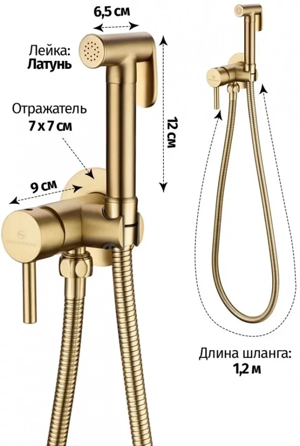 Набор для гигиенического душа Grocenberg GB001MG со скрытой частью, материал латунь, цвет матовое золото.