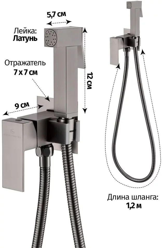 Набор для гигиенического душа Grocenberg GB002BG со скрытой частью, материал латунь, цвет графит.