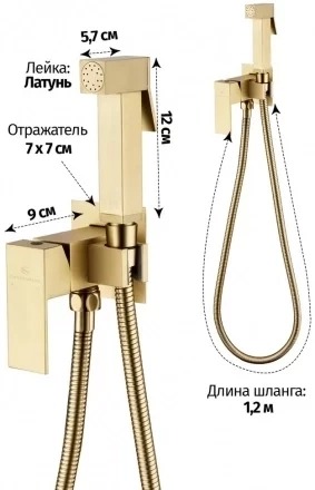 Набор для гигиенического душа Grocenberg GB002MG со скрытой частью, материал латунь, цвет матовое золото.