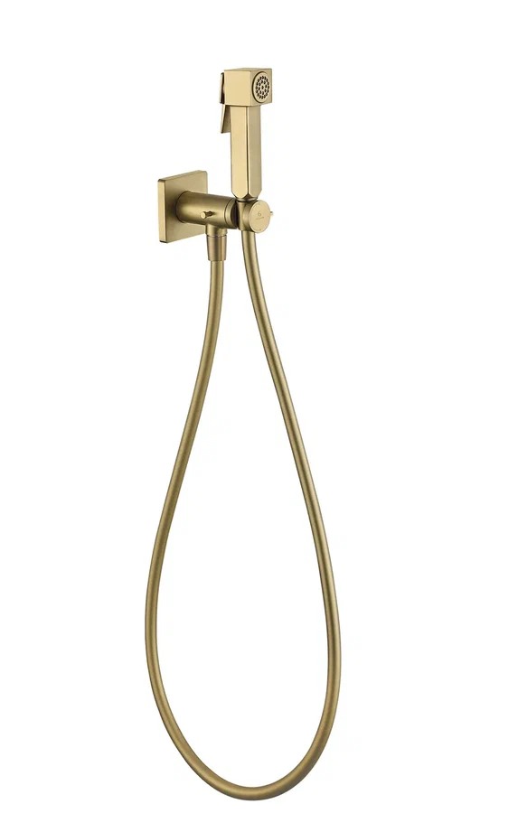 Набор для гигиенического душа Grocenberg GB005MG со скрытой частью и прогрессивным картриджем, материал латунь, цвет матовое золото.