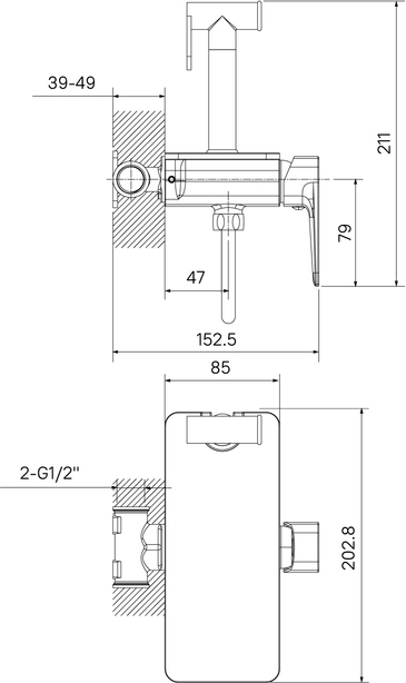 - Гигиеническая лейка из прочной латуни, внутренняя часть и душевой шланг в оплётке из нержавеющей стали (1,2 м) в комплекте.