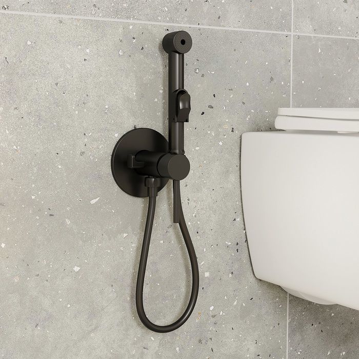 Набор для гигиенического душа Iddis Spring 003BLR0i08 со скрытой частью, материал - латунь, цвет - чёрный матовый.