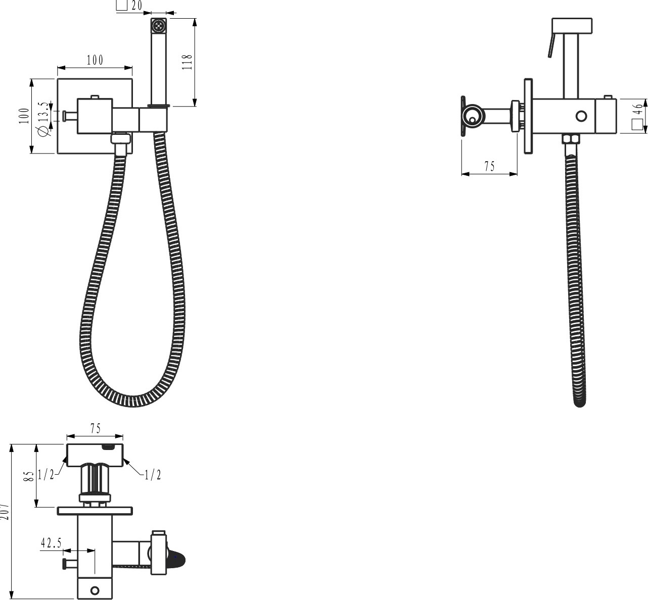 Набор для гигиенического душа с термостатом Gappo G7207-60, материал - латунь, цвет - черный.