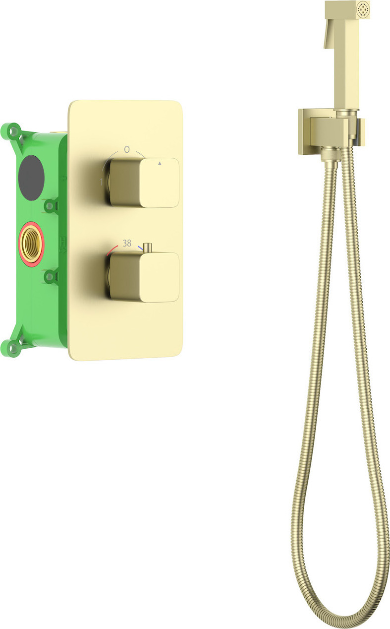 Набор для гигиенического душа с термостатом Timo Petruma 5089/17SM, со скрытой частью, материал - латунь, цвет - золото матовое.