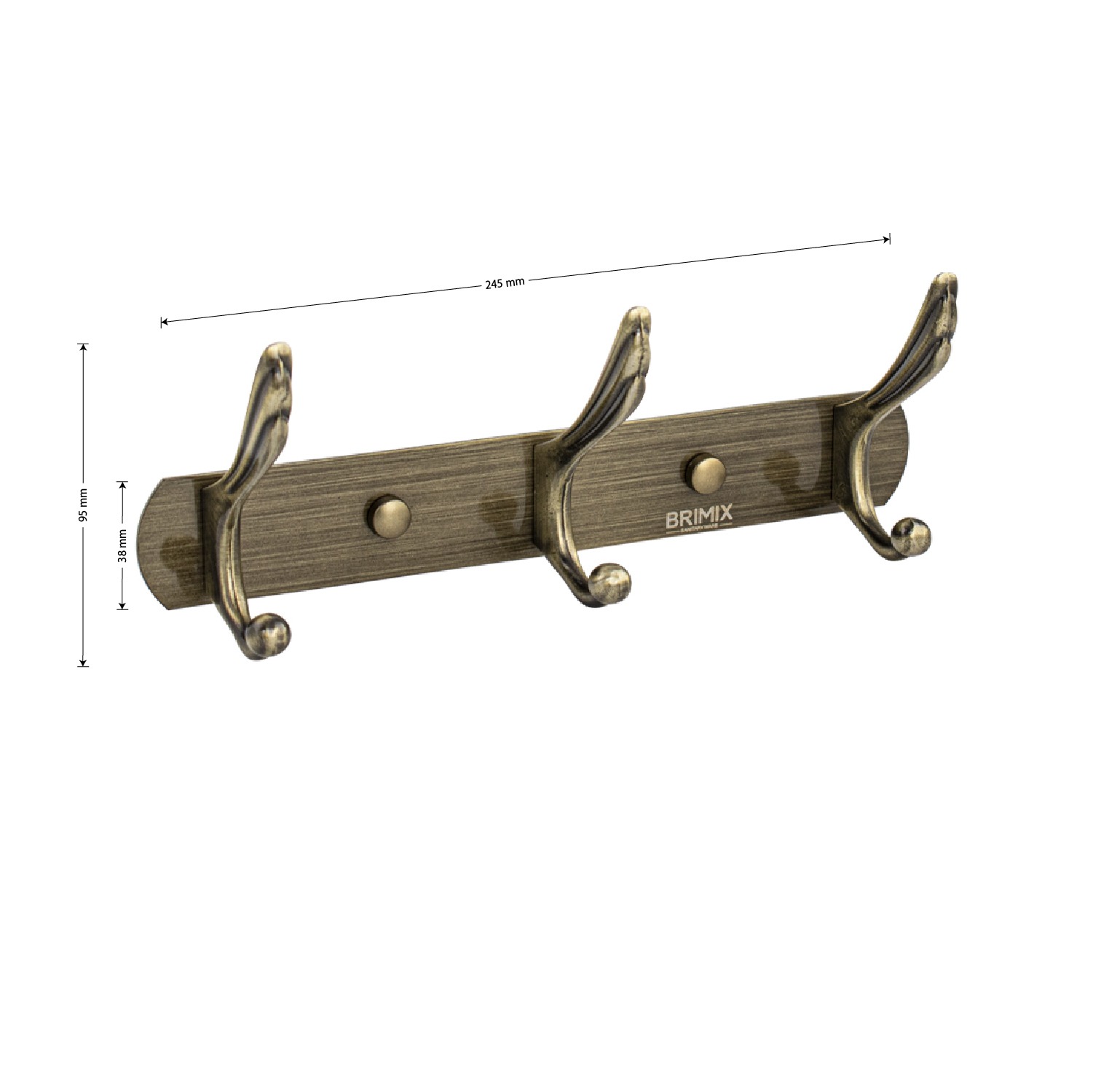 Вешалка - держатель для принадлежностей металлический, с тремя двойными крючками. Изготовлен из прочной нержавеющей стали марки SUS 304 с бронзовым покрытием, которое придает безупречный стильный вид и долговечность. Бронзовое покрытие очень стойко переносит истирания и обеспечивает долгий срок службы изделия. На держателе с легкостью можно размещать вещи для сушки или вешать, как полотенца, так и одежду перед походом в душ. Идеально подойдет не только для ванной, но и для кухни, а также для дачи или гаража - при необходимости на держатель можно вешать любые предметы. Изделие крепится к стене с помощью дюбелей и саморезов (входят в комплект).