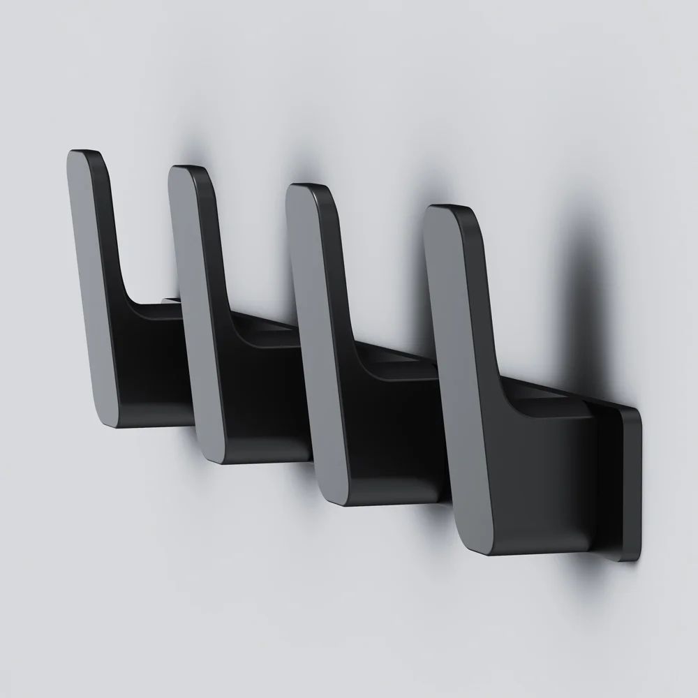 Коллекция аксессуаров Func сочетает в себе яркий дизайн безупречную эстетику и выводит функциональность каждого изделия на абсолютно новый уровень. Дизайн этой выдающейся коллекции принадлежит авторству всемирно известной студии Design3 Германия. Для ценителей функционального использования пространства ванной комнаты создан набор крючков для полотенец которые по форме так напоминают современные смартфоны. Крючки выполнены в трендовом черном оттенке с матовым покрытием. Все аксессуары Func отличает сверхпрочная конструкция и бескомпромиссное качество. В комплекте скрытые крепления установка изделия не потребует от вас профессиональных навыков.