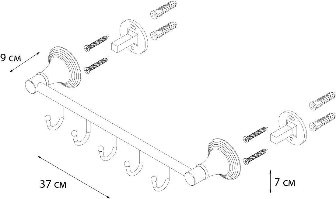 Набор крючков Fixsen Best FX-71605-5, 5 шт, материал - латунь, цвет - хром.