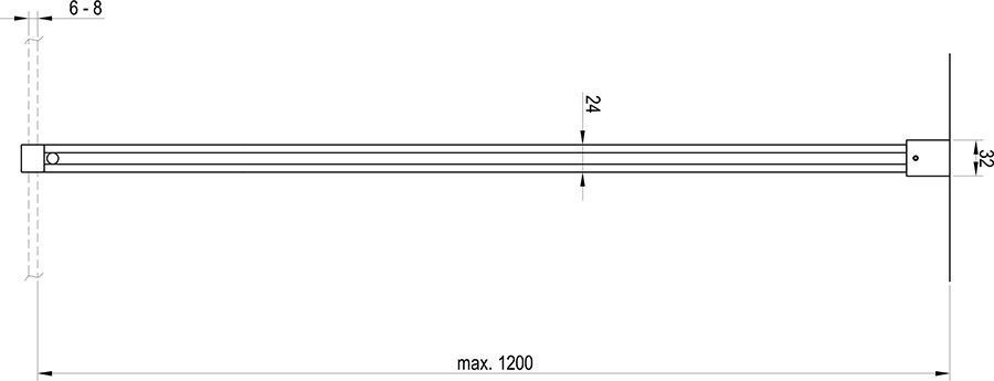 Набор металлических держателей для Walk-In Wall, Double Wall или Free. Длина верхнего держателя составляет 1200 мм и определяет ширину душевой зоны. Длина держателя может быть произвольно сокращена.