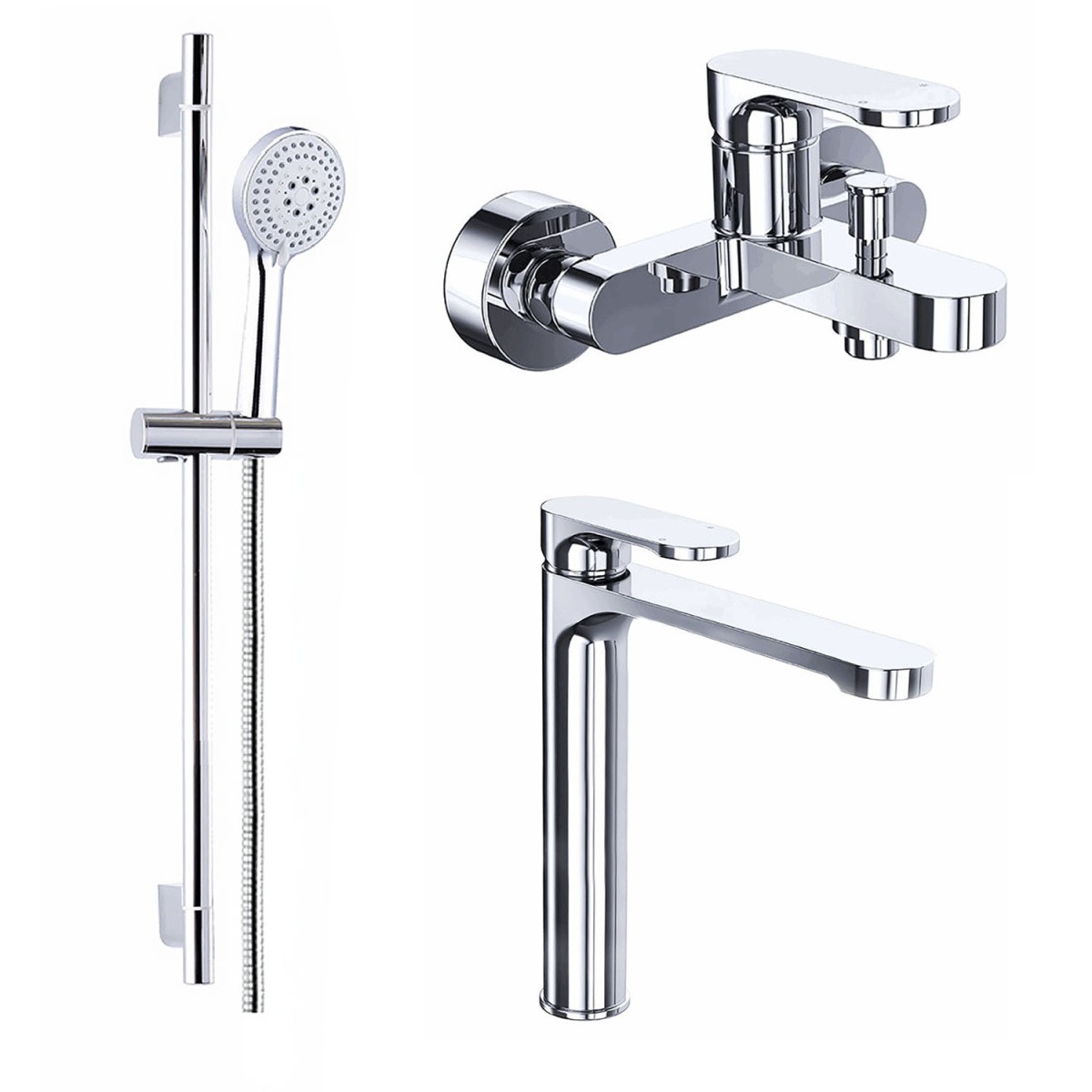 Набор смесителей 3 в 1 для душа Azario VIANO: смеситель для раковины + смеситель для ванны + душевой гарнитур, материал латунь, цвет хром.