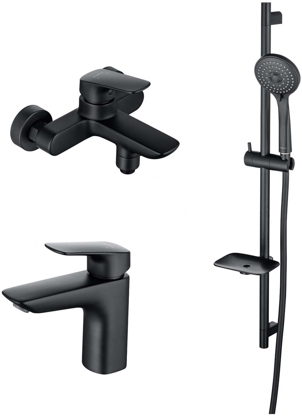 Набор смесителей 3 в 1 для ванны с коротким изливом Aquatek Вега AQ1030MB: смеситель для раковины + смеситель для ванны + душевой гарнитур.