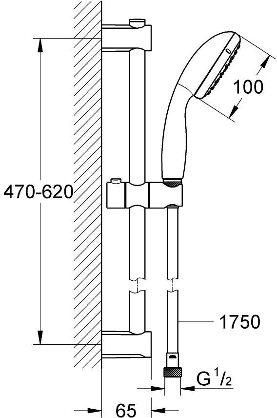 - GROHE FastFixation (регулируемое расстояние междунастенными креплениями штанги позволяет использоватьдля монтажа уже имеющиеся отверстия в стене).