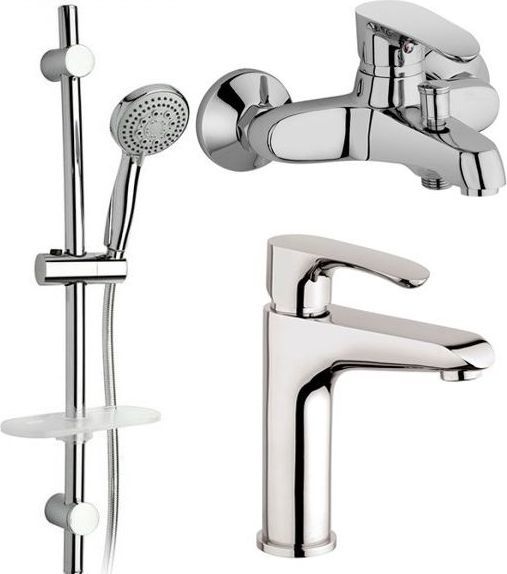Набор смесителей 3 в 1 для ванны с коротким изливом Paini Palermo PACRKIT3: смеситель для раковины + смеситель для ванны + душевой гарнитур.