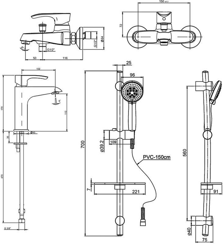 Характеристики набор смесителей для ванны Paini (PACRKIT3)