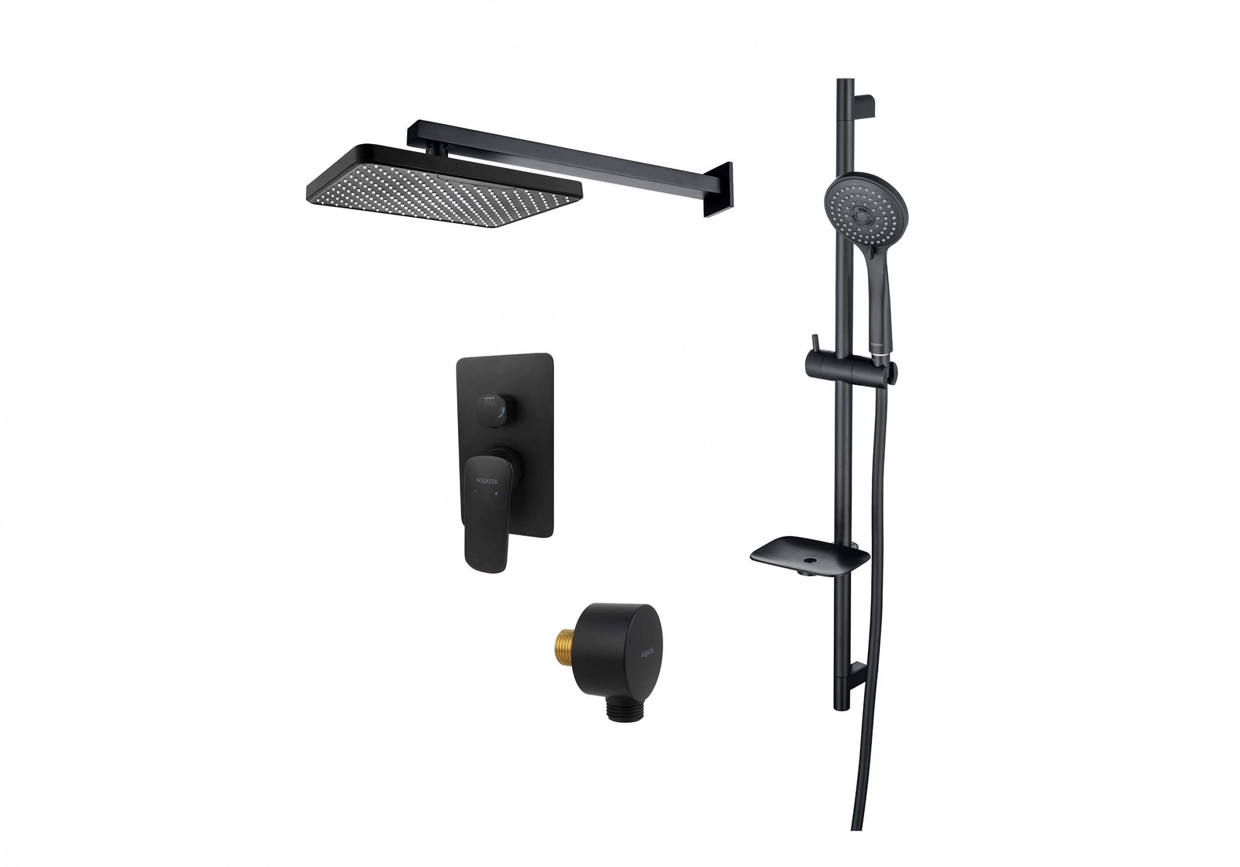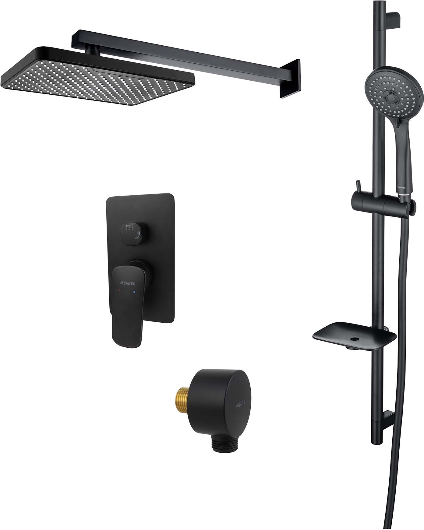 Набор смесителей 4 в 1 для душа Aquatek Вега AQ1074MB, чёрный матовый