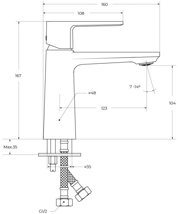 - Длина излива: 14 см