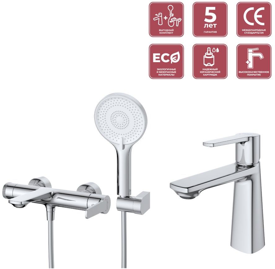 Набор смесителей Cezares: Смеситель для ванны LUX-VD-01 с душевым гарнитуром + смеситель для раковины LUX-LS-01-W0, материал латунь, цвет хром.