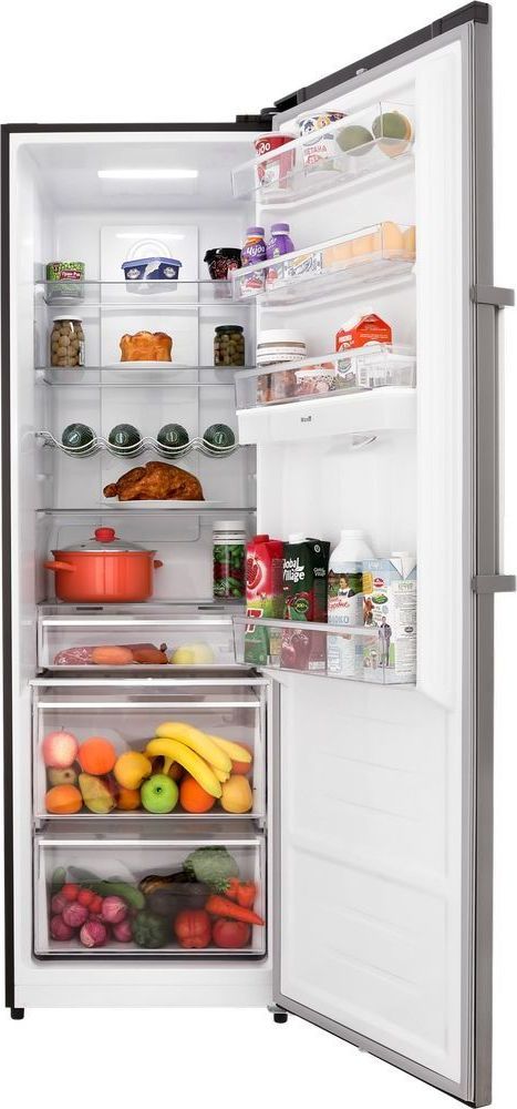 - Холодильник воплощает в себе сочетание элегантного дизайна и функциональности. Стеклянные полки и глубокие прозрачные ящики создают удобное внутреннее пространство для хранения продуктов. Двери холодильника имеют возможность перенавешивания на другую сторону. Корпус модели серебристого цвета. Высота холодильника 185 сантиметров.