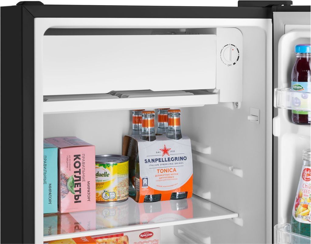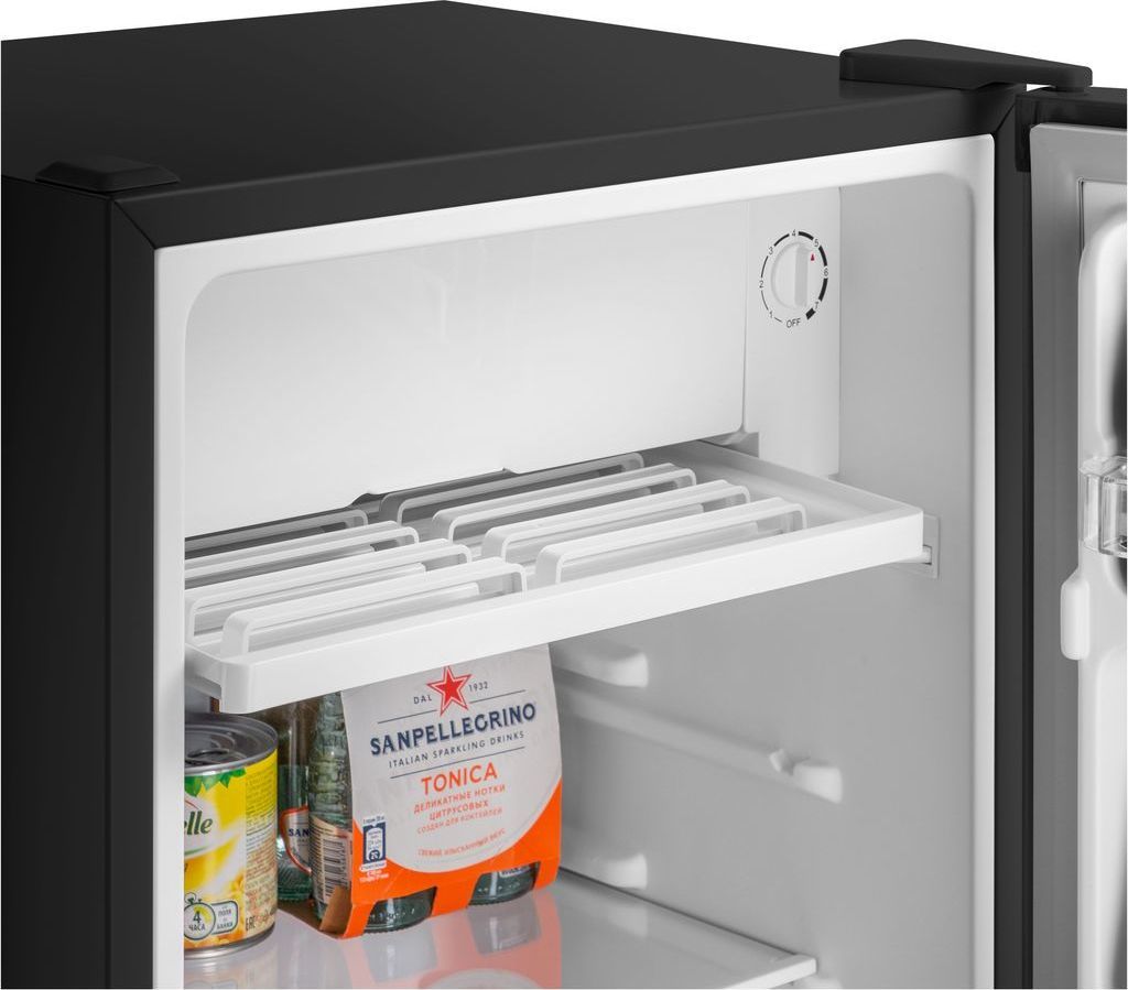 - Компактный однокамерный однодверный холодильник высотой 83 см с камерой охлаждения.
