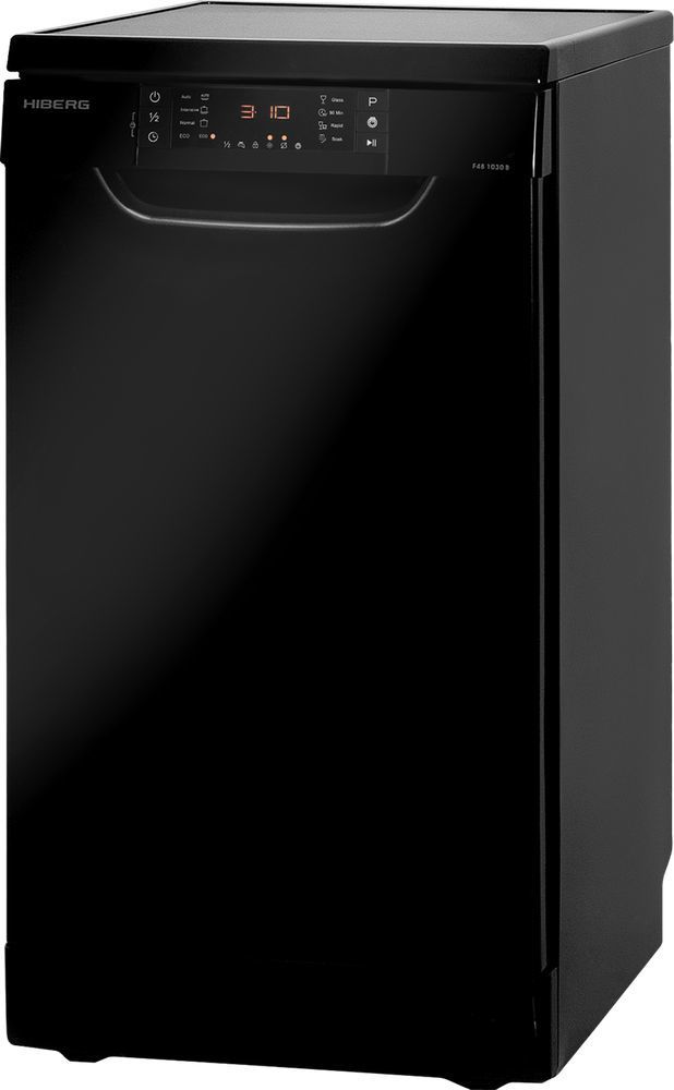 - Узкая и отдельностоящая посудомоечная машина HIBERG F48 1030 W -оптимальный вариант для малогабаритных кухонь и ежедневного использования. Модель характеризуется высоким классом энергоэффективности А++, низким уровнем шума, вместительностью до 10 комплектов посуды и 8 автоматическими программами. Панель с дисплеем и электронным управление позволит легко выставить нужный режим. Световые индикаторы на информационной панели укажут на необходимость заполнения емкости ополаскивателя и контейнера с солью.