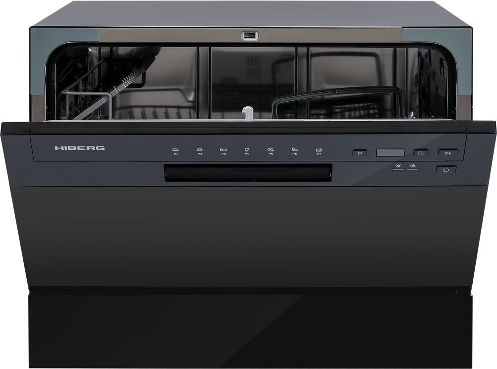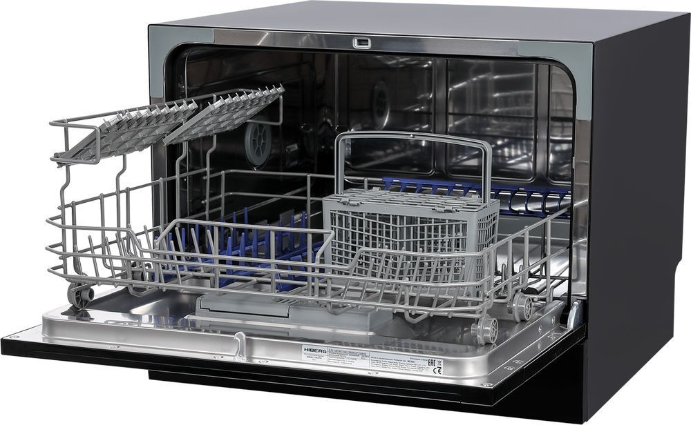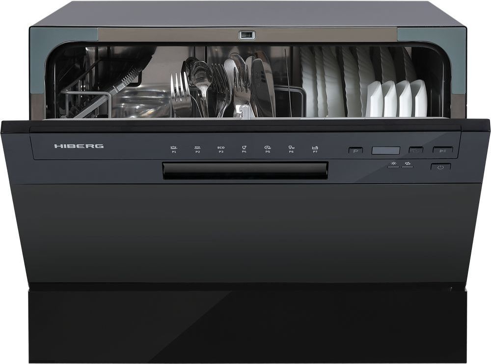- Отдельностоящая компактная посудомоечная машина HIBERG T56 615 B с возможностью встраивания – оптимальный вариант для небольшой семьи, она сэкономит ваше время и обеспечит идеальную чистоту с минимальным потреблением воды и электроэнергии.