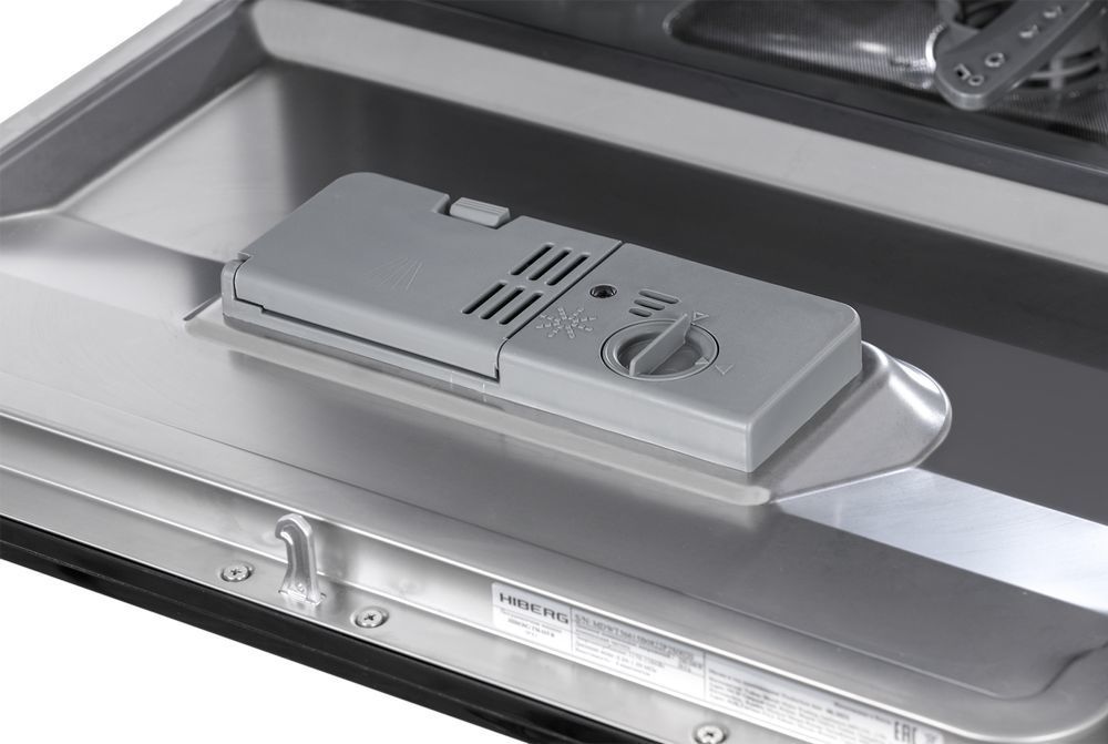 - Кроме того, посудомоечная машина HIBERG T56 615 B оснащена функцией самоочистки и имеет сушку конденсационного типа, которая экономит время и ресурсы.