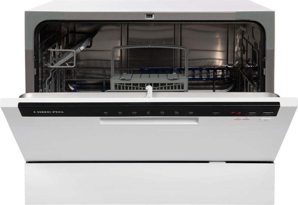 - Отдельностоящая компактная посудомоечная машина HIBERG T56 615 W с возможностью встраивания – оптимальный вариант для небольшой семьи, она сэкономит ваше время и обеспечит идеальную чистоту с минимальным потреблением воды и электроэнергии.