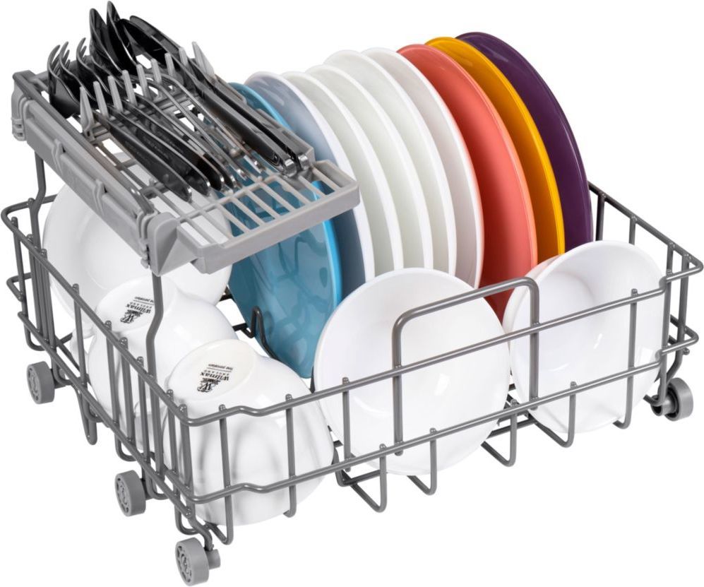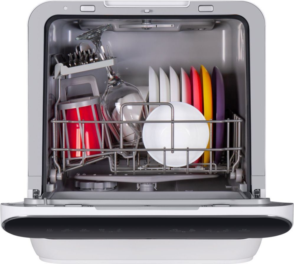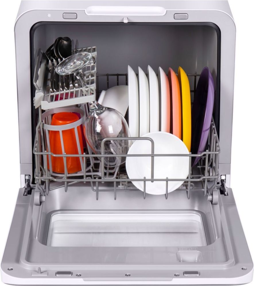 - Отдельностоящая посудомоечная машина шириной всего 42 см представляет собой суперкомпактную модель, которая поместится даже на подоконнике. К тому же, для работы ей не требуется подключение к центральному водопроводу. В комплекте идет 1 корзина для посуды, 1 полка для чашек, 1 съемная корзина для столовых приборов. Вы сможете помыть 3 комплекта посуды за один раз.