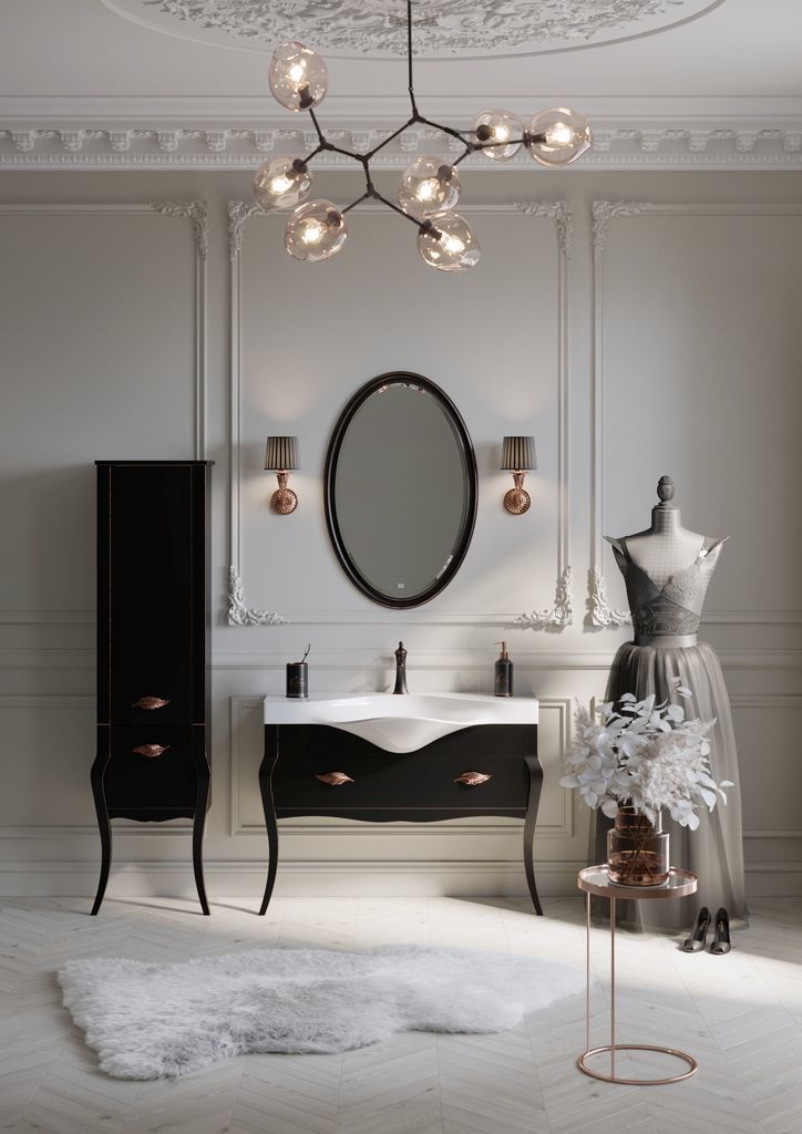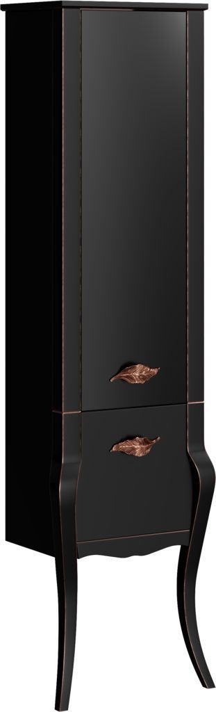 Пенал напольный Clarberg Borgia 48 см BOR0548BLK, универсальный, с дверью и ящиком, цвет черный матовый/патина медь.
