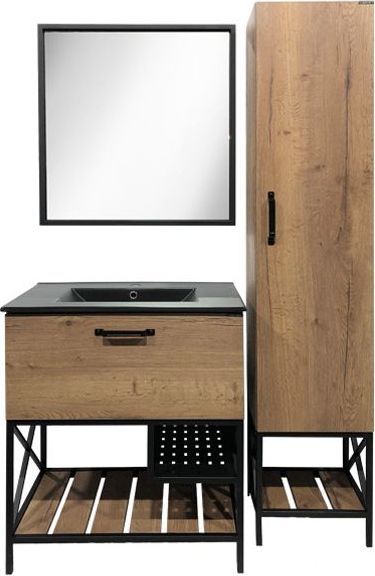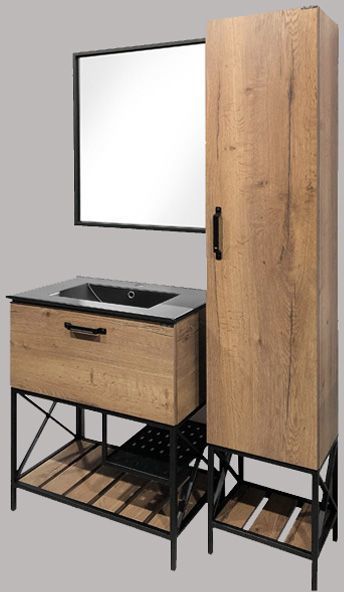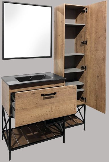 Напольная шкаф-колонна с одной распашной дверью. Створка оборудована петлями с системой плавного закрывания. За створкой 5 горизонтальных полок. Колонна универсальна, дверца может открываться вправо, либо влево. В основании колонны - каркас из стального профиля окрашенный черной эмалью с полкой открытого хранения.