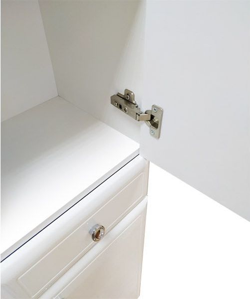 Верхняя, нижняя створки и ящик оснащены системой плавного закрывания. Фасады покрыты белой глянцевой эмалью.