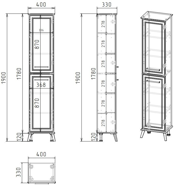 Пенал напольный EvaGold Michael EG010409 400х1900х330 мм, цвет белый.